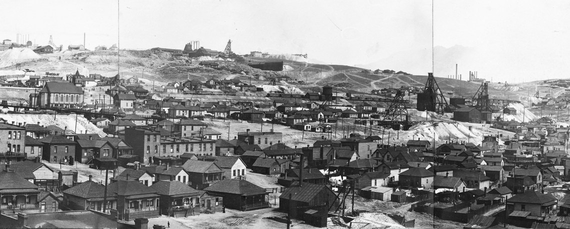 Butte, Montana, known as the “Richest Hill on Earth,” had a more profound impact upon the world’s copper industry than any other mining community in the nation. In terms of total metal production alone, Butte remains unrivaled. No other single metal mining district in the United States was worked so intensively for such a long period of time. Butte’s story begins with the discovery of gold in the 1860s, a silver boom in the 1870s, but it was the mining of copper that put Butte on the national stage. As early as 1882, the mines of Butte were generating 10% of America’s total copper output. Today, Butte’s landscape is dotted with seventeen headframes, steel structures used to hoist ore and men.